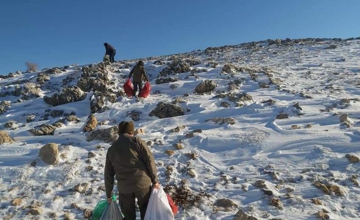Adıyaman Doğa Koruma ve Milli Parklar Şube Müdürlüğü ekipleri tarafından yabani hayvanlar için Nemrut Dağına yem bırakıldı.