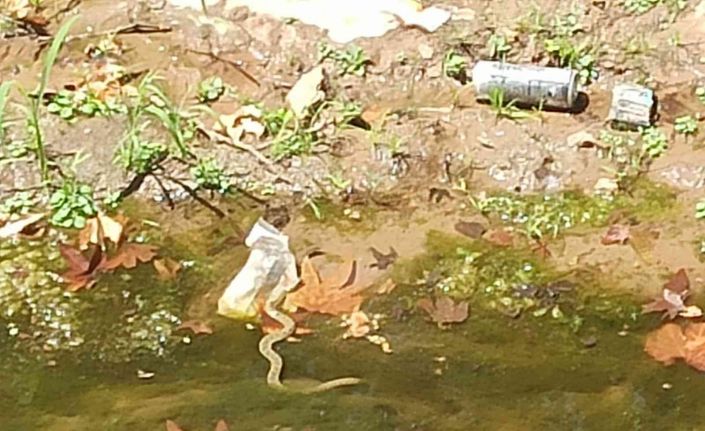 Adıyaman’ın Gölbaşı ilçe merkezinde bulunan yemişen deresinde görülen yılan paniğe neden oldu.
