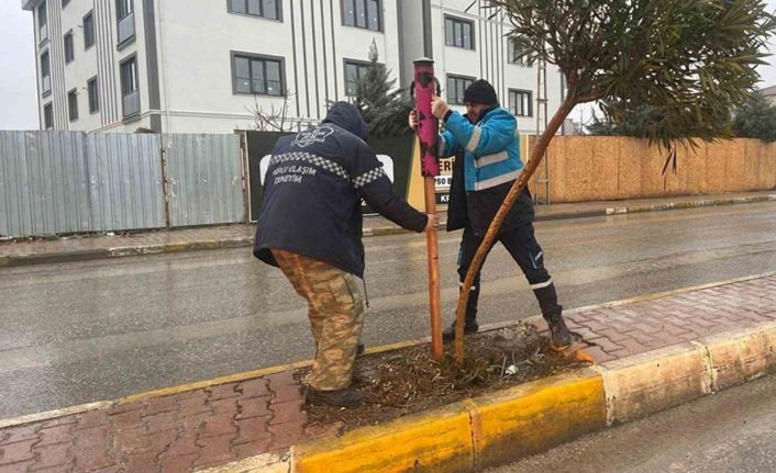 Son dönemde etkili olan şiddetli yağışlar ve rüzgarlar nedeniyle formu bozulan genç fidanlar, ekipler tarafından tek tek incelenerek koruyucu çıta montajlarıyla destekleniyor. Eş zamanlı olarak yürütülen budama çalışmalarıyla, ağaçların hem mevsim şartlarına karşı direnci artırılıyor hem de sağlıklı gelişimleri için gerekli fizyolojik alan oluşturuluyor.