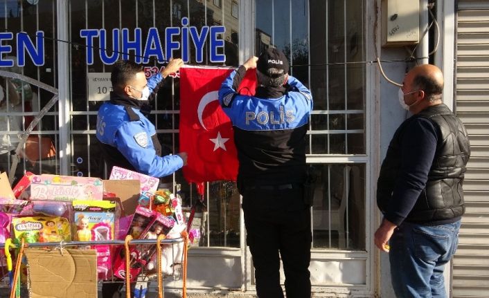 Adıyaman İl Emniyet Müdürlüğü tarafından iş yerlerinde ve ikamet balkonlarında eskiyen Türk Bayrakların yerine yenileri asıldı