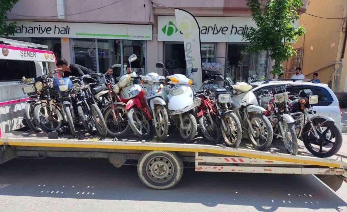 Afyonkarahisar’ın Bolvadin ilçesinde polis tarafından gerçekleştirilen denetimlerde, plakasız ve tescilsiz olduğu belirlenen 14 motosiklet trafikten men edildi.