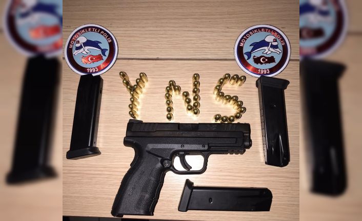 Edinilen bilgilere göre, İl Emniyet Müdürlüğü Asayiş Şube Müdürlüğü’ne bağlı motosikletli polis timleri Burmalı Mahallesi’nde denetim yaptıkları esnada durumundan şüphelendikleri bir aracı durdurarak arama yaptı. Aramada polis 1 ruhsatsız tabanca, 3 şarjör ve 40 adet mermi ele geçirdi. Olayın ardından araçta bulunan ve 18 ayrı suçtan kaydı bulunan R.A. (32), isimli şahıs gözaltına alındı.
