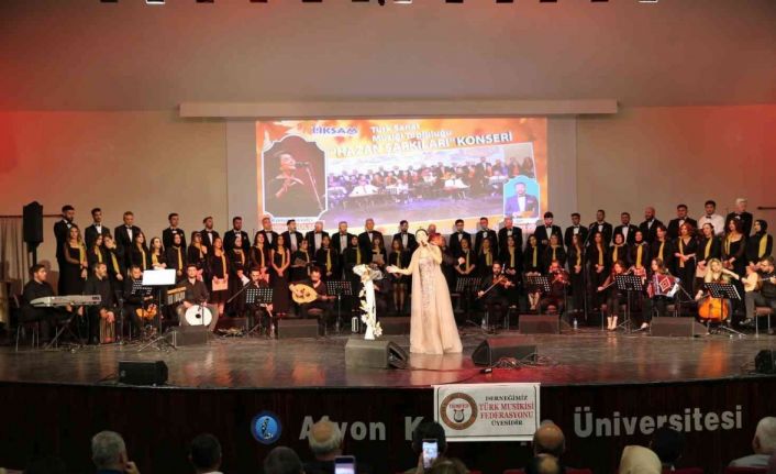 AKSAM Türk Sanat Müziği Topluluğu tarafından birbirinden seçkin eserlerin seslendirildiği Hazan Şarkıları konseri, gönüllere nakşedilen nağmeleri ile sanatseverlere güzel bir gece yaşattı. Aksam Genel Koordinatörü ve Türk Sanat Müziği Topluluğu Şefi Öğr. Gör. Yunus Emre Uğur; “2013 yılından itibaren Afyonkarahisar’da birbirinden farklı tematik konulardan oluşturdukları konserlerle Afyonkarahisarlı sanatseverlerin karşısına çıktıklarını, bu yıl da birbirinden farklı alanlarda nitelikli çalışmaları Afyonkarahisarlı hemşerilerimizle buluşturmanın mutluluğunu yaşayacağız. Kadrosunda hemen her yaştan 70’den fazla Türk Sanat Müziği sevdalısının olduğu bu topluluğun yıl içerisinde yaklaşık 3 konser planlıyoruz” dedi.