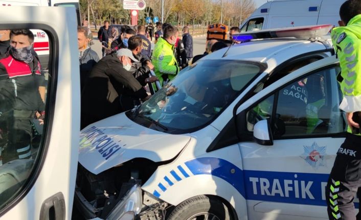 Afyonkarahisar’da öğrenci servisi ile trafik polis otosu çarpıştı