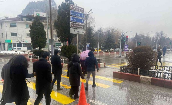 Afyonkarahisar’da beklenen yağmur yağışı gece geç saatlerde başlarken, yağış günün aydınlanması ile etkisini arttırdı.