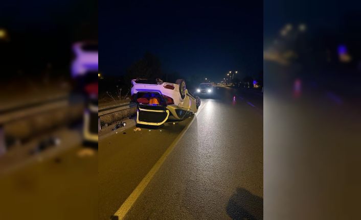 Afyonkarahisar’da kontrolden çıkarak bariyerlere çarpıp devrilen otomobilde 5 kişi yaralandı.
