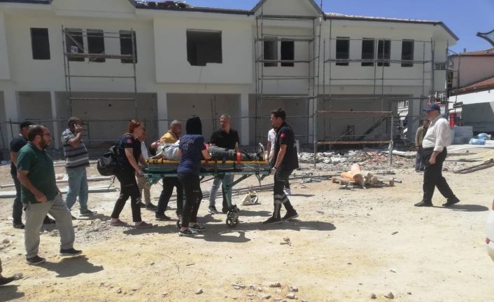 Afyonkarahisar’ın Bolvadin İlçe Belediyesi tarafından yaptırılan iş yerleri inşaatında çalışan işçi yaklaşık 3 metre yükseklikten aşağı düşerek ağır yaralandı.