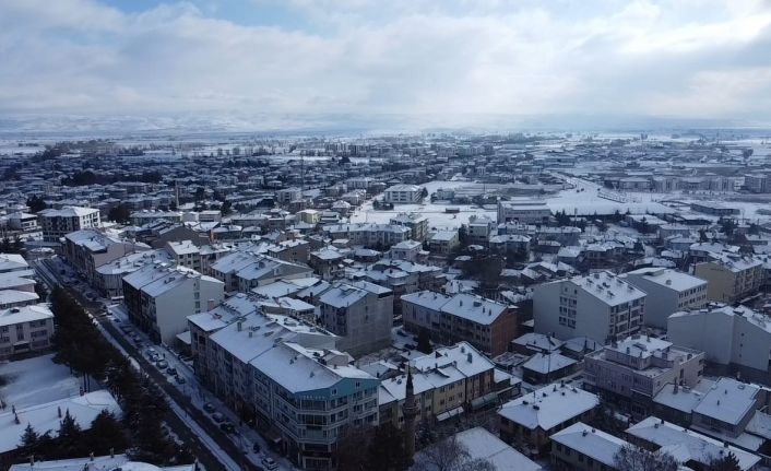 Beyaza bürünen ilçe havadan görüntülendi