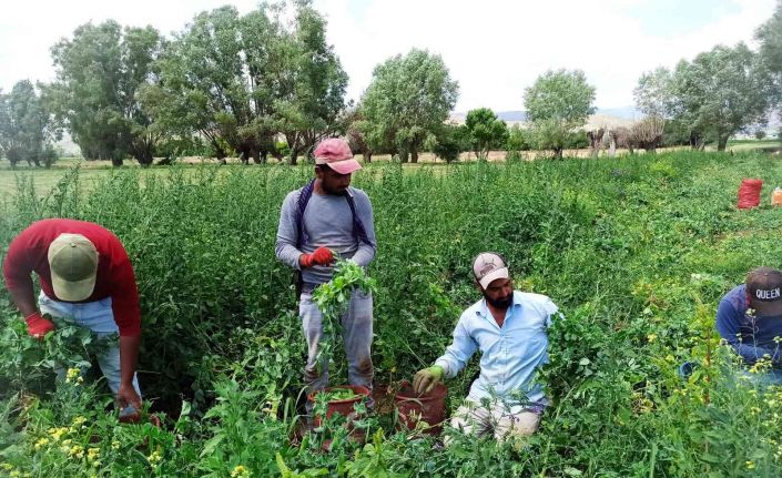 Şanlıurfa’dan Afyonkarahisar’ın Şuhut ilçesine gelen işçiler, günlük 150 liralık yevmiye ile sabah saatlerinden akşam saatlerine kadar zor şartlar altında çalışarak ekmek parasını kazanıyor.