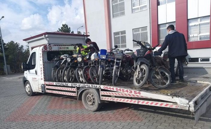 Afyonkarahisar’ın Bolvadin ilçesinde polis tarafından gerçekleştirilen 1,5 saatlik denetimde tescilsiz olduğu tespit edilen 12 motosiklet trafikten men edildi.