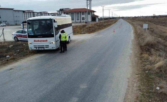 Afyonkarahisar’ın Bolvadin ilçesinde Jandarma trafik ekipleri okul servis araçlarını denetledi.
