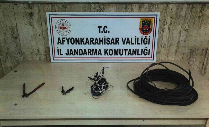 Afyonkarahisar’ın Emirdağ ilçesinde 2 şahıs çaldıkları bakır kabloları hurdacıya satamadan jandarma tarafından yakalandı.