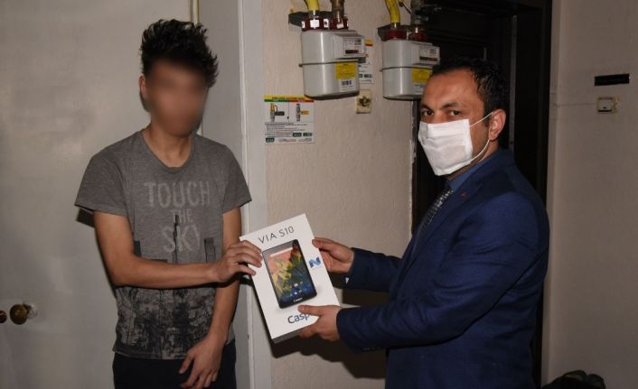 Afyonkarahisar’da bir lise öğrencisine, derslerinden geri kalmaması ve EBA sistemi üzerinden derslerini takip etmesi için Belediye Başkanı Mehmet Zeybek tarafından tablet hediye edildi.