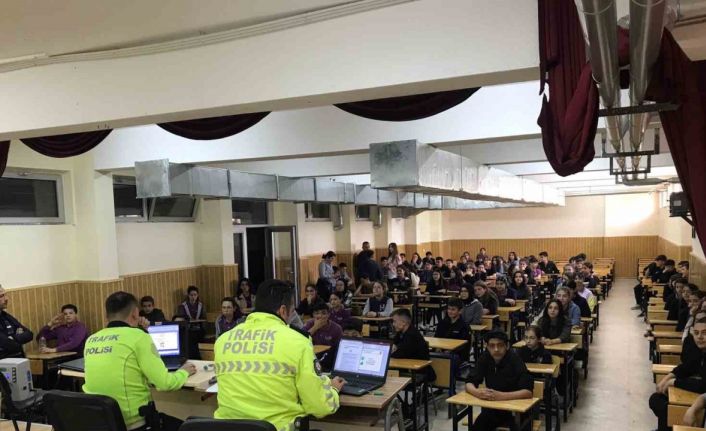 Afyonkarahisar’ın Dinar ilçesinde polis tarafından lise öğrencilerine yönelik trafik eğitimi verildi.