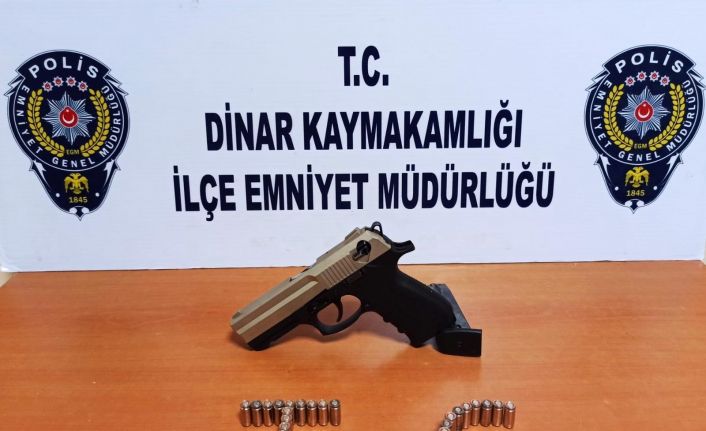 Dinar İlçe Emniyet Müdürlüğü Suç Önleme ve Soruşturma Büro Amirliği ekiplerince bir düğün konvoyunda havaya ateş açan bir kişi aracıyla birlikte durdurularak arama yapıldı. Yapılan aramalarda 1 tabanca ile 38 adet mermi ele geçirildi. Şahıs hakkında ’genel güvenliğin kasten tehlikeye sokulması’ konulu suçtan adli işlem ve ’silah bulundurma’ konusundan idari işlem yapıldı. Araç sürücüsünün alkollü olduğunun tespit edilmesi üzerine gerekli cezai işlemler uygulanarak, ehliyetine 6 ay süre ile el konuldu.