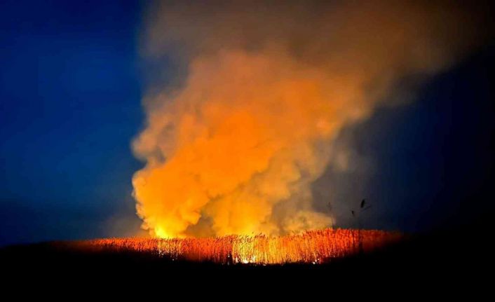 Afyonkarahisar’daki Eber Gölü’nde bir ayda 7. kez yangın çıkarken, alevlerin büyüklüğü Çay, Bolvadin ve Sultandağı ilçelerinden görüldü.