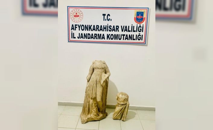 Afyonkarahisar’da ellerindeki tarihi eser niteliği taşıyan iki heykeli satmak isteyen şahıslar jandarmanın operasyonu ile yakalandı.