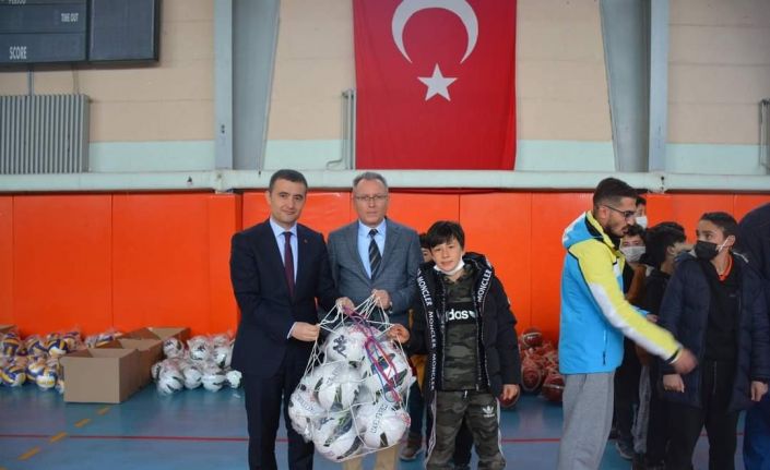 Afyonkarahisar’ın Emirdağ ilçesinde okullara kaymakamlık tarafından spor malzemeleri dağıtıldı.