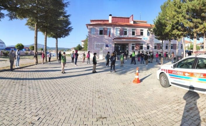 Emirdağ’da kısmi yüz yüze eğitimde ikinci aşamaya geçişle beraber okul servisleri de faaliyete başladı. Emirdağ Jandarma Trafik Komutanlığı Jandarma Trafik Timleri okul servislerinin faaliyete başlamasıyla bazı öğrencileri okullarda servis yolculuğunda dikkat edilmesi gereken hususlarla ilgili bilgilendirdi. Ekipler Gömü Beldesi ilk ve ortaokul öğrencilerine uygulamalı olarak servis yolculuğunda dikkat edilmesi gereken hususlarla ilgili bilgilendirme yaptı. Okul servisi minibüsünün de hazır bulunduğu bilgilendirme esnasında maske ve mesafe kurallarına dikkat çekildi.