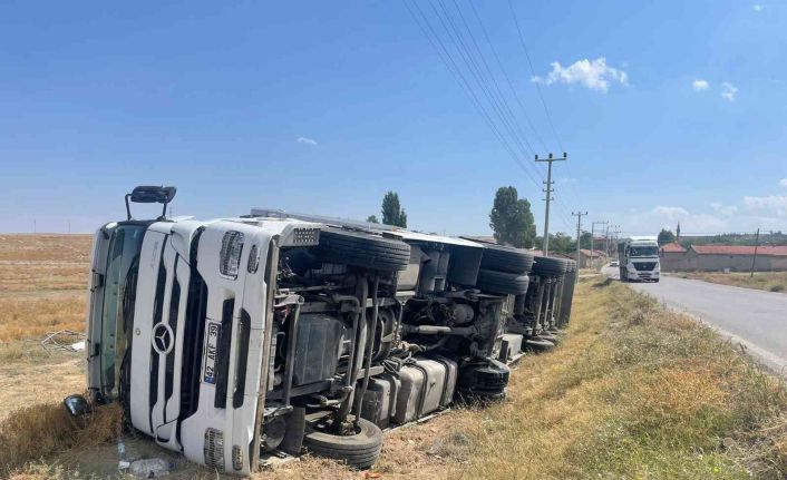Afyonkarahisar’da kontrolden çıkan tuz yüklü tır tarım arazisine devrildi, ölen ya da yaralananın olmadığı olayda tonlarca tuz ziyan oldu.