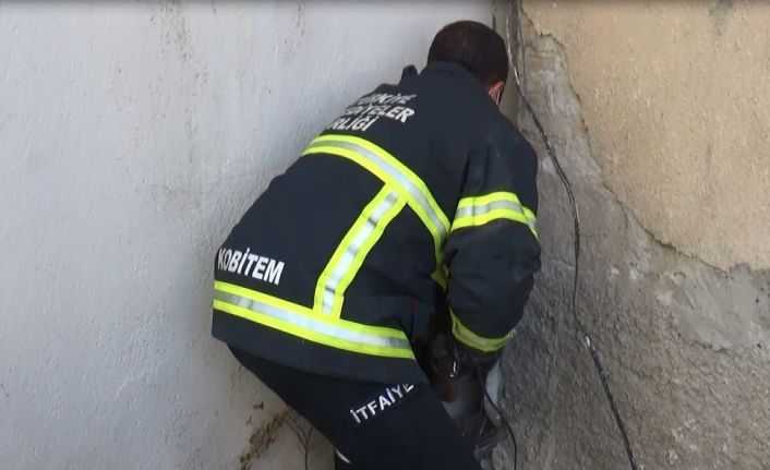 Afyonkarahisar’ın Sandıklı ilçesinde girdiği iki bina arasındaki boşlukta sıkışan köpeğin imdadına itfaiye ekipleri yetişti.