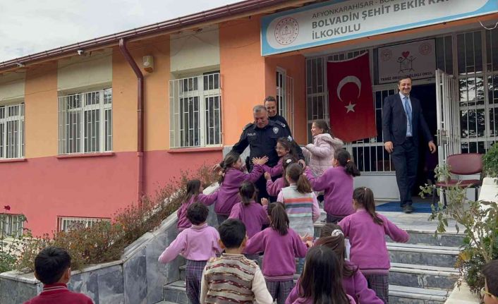 Bolvadin İlçe Emniyet Müdürlüğü trafik ekiplerince Şehit Bekir Kaynak İlkokulu öğrencilerine emniyet kemeri kullanımı, yolda karşıdan karşıya geçerken uyulması gereken kurallar, okul servisi kuralları, güvenli oyun alanları gibi konularda bilgiler verildi.