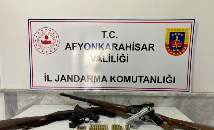 Edinilen bilgilere göre, Afyonkarahisar İl Jandarma Komutanlığı ekipleri düğün ve eğlencelerde silah ile ateş etmek suretiyle genel güvenliği tehlikeye düşürdüğü tespit edilen şahısların yakalanmasına yönelik operasyon yapıldı. Operasyonda şüphelilerin ikamet ettikleri ev, işyeri ve eklentilerinde yapılan arama sonucunda 2 tabanca, 2 av tüfeği, 99 mermi ve 3 şarjör ele geçirildi. Olayla ilgili soruşturmanın devam ettiği bildirildi.