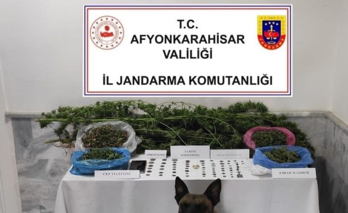 Edinilen bilgilere göre, Afyonkarahisar İl Jandarma Komutanlığı ekipleri Sülün beldesinde yaşayan M.K., isimli şahsın evinde esrar elde etmek için kenevir ektiği bilgisini aldı. Ardından şahsın evine baskın düzenleyen ve eğitimli narkotik köpekleri ile aramam yapan ekipler 2 bin 130 kök kenevir, 2 kök kenevir, 1 gram kenevir tohumu, 60 adet sikke ve 8 adet tarihi değeri olduğu değerlendirilen obje ele geçirildi.