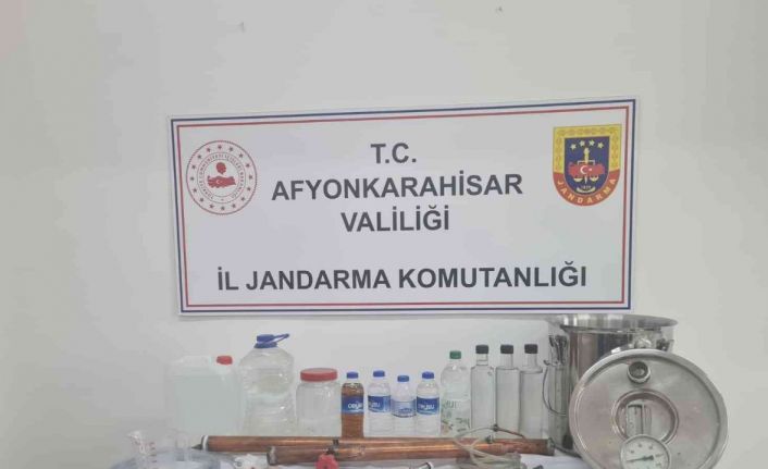 Afyonkarahisar’ın Sandıklı ilçesinde kaçak alkol üreterek sattığı tespit edilen bir kişi jandarma operasyonuyla yakalanırken, olayda değişik türlerde litrelerce kaçak alkol ele geçirildi.