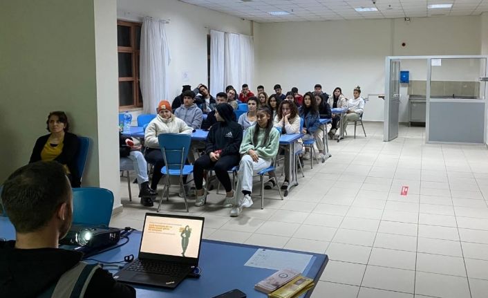 Afyonkarahisar’ın Dinar ilçesinde polis tarafından Gençlik ve Spor Bakanlığına bağlı Kredi ve Yurtlar Kurumunda kalan yaklaşık 50 kadın öğrenciye Kadın Destek Uygulaması (KADES) anlatıldı.