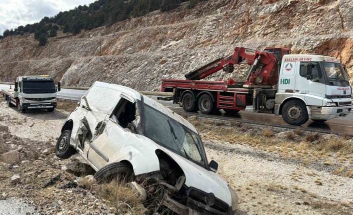 Afyonkarahisar’da yol kenarındaki kayalıklara çarparak devrilen hafif ticari araçta 2 kişi yaralandı.