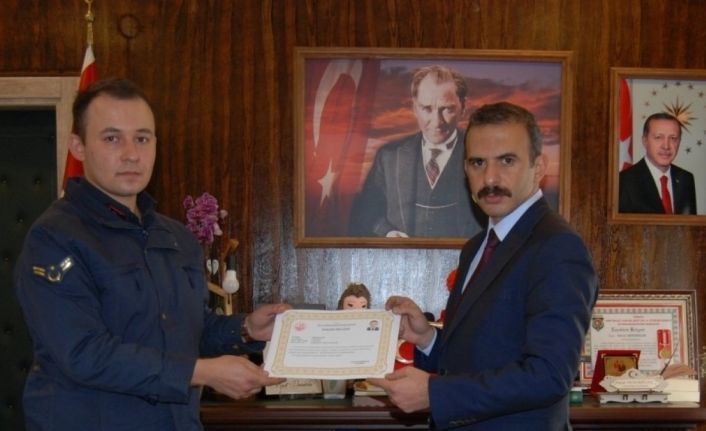 Afyonkarahisar Sultandağı Kaymakamı Murat Demirbilek, ilçedeki hırsızlık olayında titiz çalışma gösteren Jandarma Astsubay Çavuş Talha Emre Sarı’ya başarı belgesi verdi.