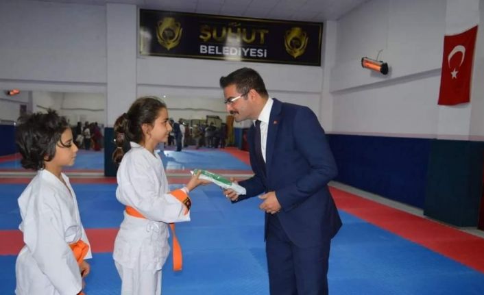 Afyonkarahisar’ın Şuhut Kaymakamı Harun Reşit Han, Şuhut İlçe Halk Eğitim Merkezi tarafından düzenlenen karate kursunda eğitim gören öğrencilerin kuşak bağlama törenine katıldı.