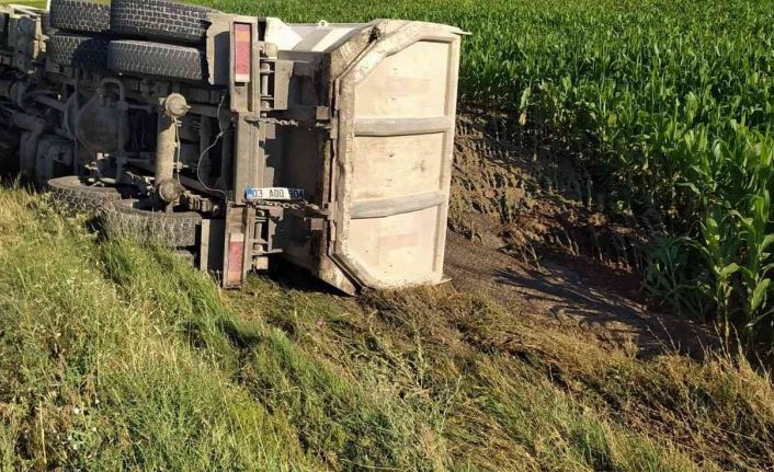 Afyonkarahisar’da sürücüsünün kontrolünden çıkan kamyon mısır tarlasına devrilirken, kazada ölen ya da yaralanan olmadı.