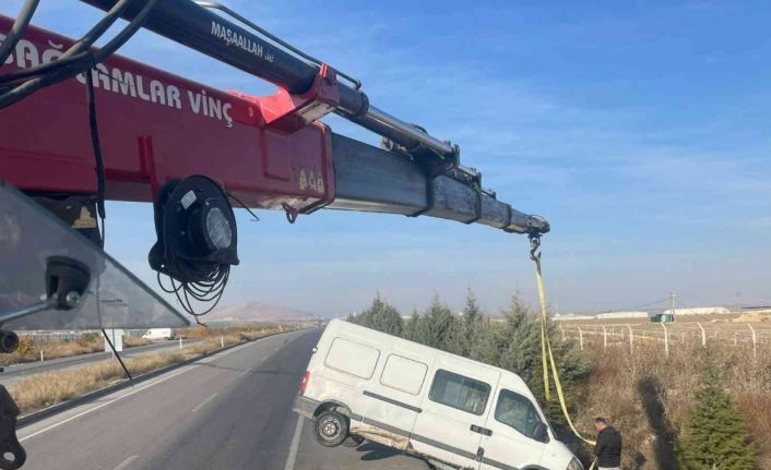 Afyonkarahisar’ın Emirdağ ilçesinde kontrolden çıkan minibüs yol kenarındaki bariyerlere çıkıp, askıda kalarak durabildi. Ölen ya da yaralananın olmadığı kazada minibüsün bariyerlerin üstündeki görüntüsü ise ilginç bir manzara oluşturdu.