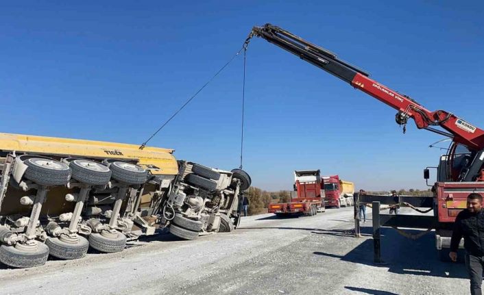 Afyonkarahisar’da lastiği patladıktan sonra yol kenarına devrilen tırın sürücüsü yaralanırken, kaza esnasında yolun boş olması yaşanabilecek facianın önüne geçildi.