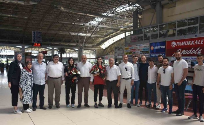 Meryem Betül Çavdar ve Kübra Kocakuş çiçeklerle karşılandı