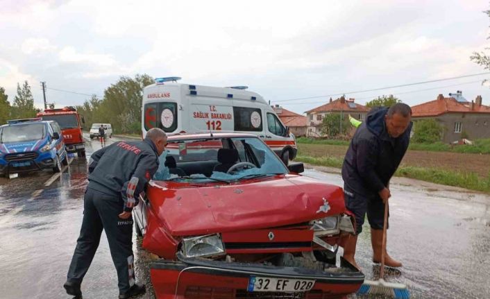 Afyonkarahisar’ın Şuhut ilçesinde şiddetli yağmur nedeniyle kontrolden çıkan minibüsün önünde seyreden otomobile çarpması sonucu meydana gelen trafik kazasında 2 kişi yaralandı.