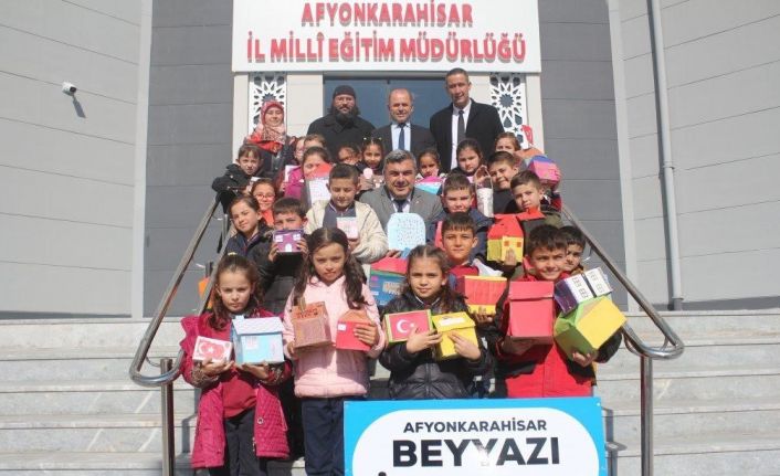 Afyonkarahisar merkeze bağlı Beyyazı İlkokulu’nda öğrenim gören 4. sınıf öğrencileri depremzedeler için kumbaralarında biriktirdikleri parayı bağış yaptı.