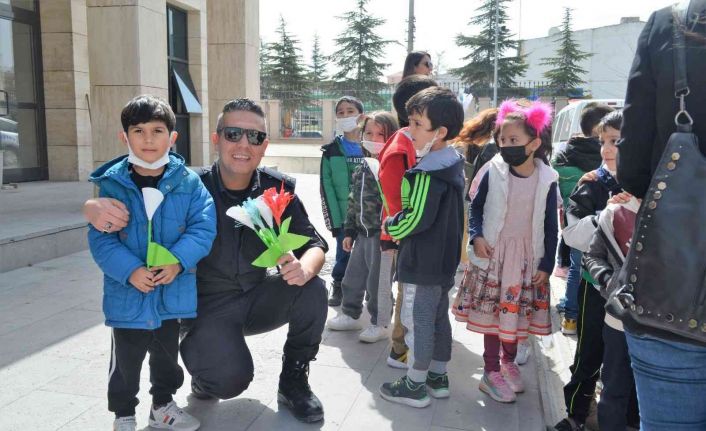 Emirdağ Emsal-Mustafa Şahin Anaokulu öğrencileri İlçe Emniyet Müdürlüğümüzü ziyaret etti. Anaokulu öğrencileri kendi elleriyle yaptıkları çiçekler ve resimler polislere teslim etti. Ziyarette minikleri İlçe Emniyet Müdürü Erdal Yanık ve beraberinde ki polis memurları karşıladı. Miniklerin getirdikleri hediyelerden duydukları memnuniyeti ifade eden Yanık, çocuklara ilçe emniyet müdürlüğünü gezdirip onlarla yakından ilgilendi.