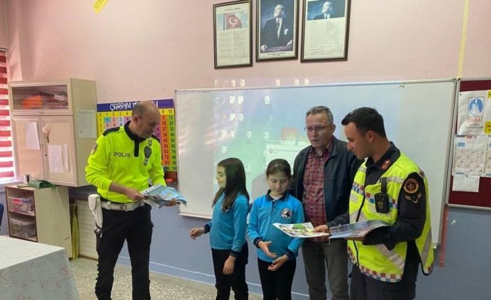 Afyonkarahisar’da polis ve jandarma personelleri tarafından ilkokul öğrencilerine trafik eğitimi verildi.