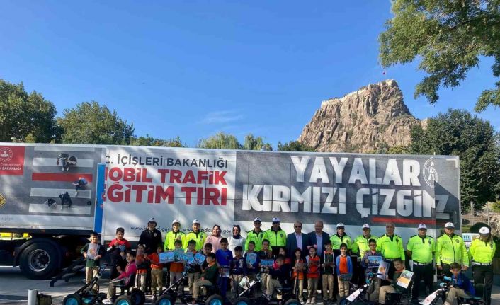 Emniyet Genel Müdürlüğü tarafından hazırlanan ve yol güvenliğiyle ilgili konuların işlendiği Mobil Trafik Tırı Afyonkarahisar’da çocuklarla buluştu.