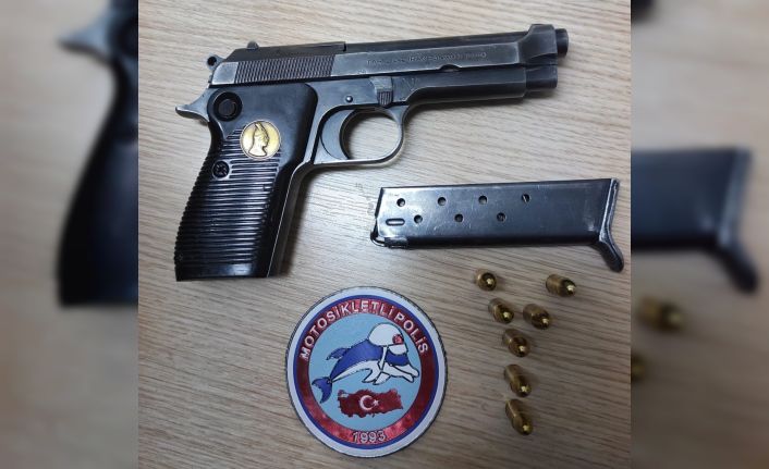 Motosikletli polis timleri ruhsatsız tabanca ele geçirdi