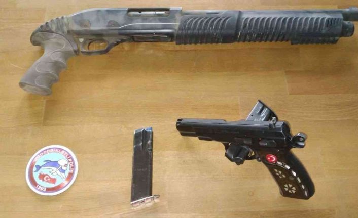 Afyonkarahisar İl Emniyet Müdürlüğü Motosikletli Polis Timleri tarafından kent genelinde yapılan uygulamada bir adet ruhsatsız pompalı tüfek ve bir adet ruhsatsız tabanca ele geçirildi.