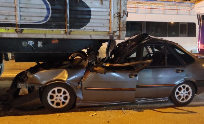 Afyonkarahisar’ın Çay ilçesinde kavşakta kırmızı ışıkta bekleyen tıra arkadan çarpan otomobilde iki kişi yaralandı. Kazada otomobilin neredeyse tamamının tırın altına girmesi ise kazanın şiddetini gözler önüne serdi.