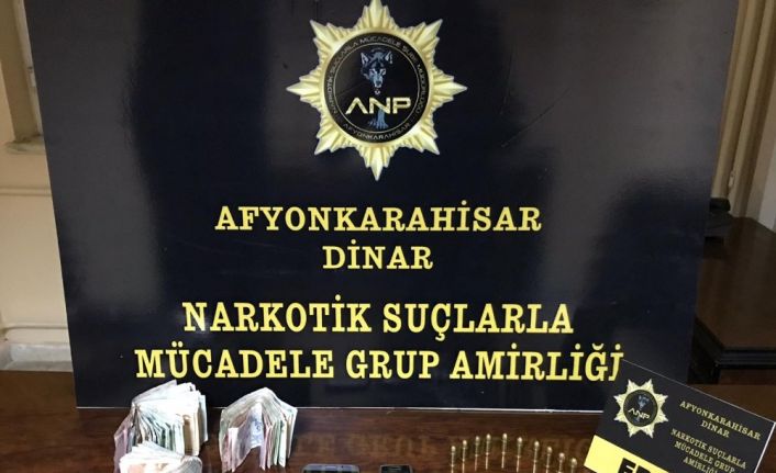 Olay, Dinar ilçesi Mehmet Çavuş mahallesinde meydana geldi. Dinar Narkotik Suçlarla Mücadele Grup Amirliği ekipleri uyuşturucu ticareti yaptığı öne sürülen Atalay D., isimli şahsı takibe aldı. Ardından şahsın evine baskın düzenleyen ekipler ahırda yaptığı aramada saman balyası arasında şeffaf poşete sarılı şekilde 0.7 gram eroin, 11 bin 835 TL uyuşturucudan elde edildiği değerlendirilen para, 10 adet mermi ve cep telefonları ele geçirdi.