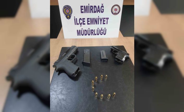 Edinilen bilgilere göre, Emirdağ İlçe Emniyet Müdürlüğüne bağlı ekipler tarafından ilçe merkezinde asayiş denetimi yapıldı. Denetimde girilen bir kahvehanede ekipler yaptıkları aramada 2 ruhsatsız tabanca ele geçirildi. Tabancalarla birlikte 9 merminin de yakalandığı belirtilirken, olayla ilgili soruşturma başlatıldığı bildirildi.