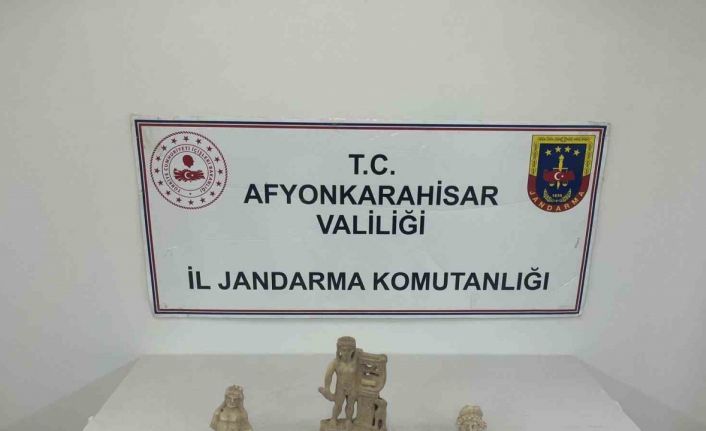 Afyonkarahisar İl Jandarma Komutanlığı, kaçakçılıkla mücadele çalışmalarına devam ediyor. Bu çerçevede jandarma ekipleri İ.A. isimli şahsın aracında tarihi eser bulundurduğu ve satışını yapacağı yönünde bilgi elde etti. Bunun üzerine harekete geçen ekipler, şüpheli aracın peşine düşerek Çobanlar’da durdurdu. Adli makamlardan alınan arama kararına istinaden araçta yapılan arama sonucunda; 3 adet Roma dönemine ait olduğu değerlendirilen farklı ebatlarda heykel, ele geçirildi. Meydana gelen olayla ilgili adli soruşturma devam ediyor.