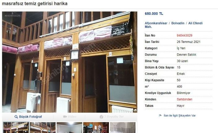 Bir kişinin hayatını kaybettiği Bolvadin ilçesindeki hamam bir satış platformunda satışa çıkartıldı. Hamamda çıkan kavgada hayatını kaybeden Hilmi Coşkun’un ailesi tarafından satışa çıkartılan hamam için 650 bin lira fiyat istenirken satış ilanının altında bulunan açıklamada ise hamamın ‘vefat nedeniyle’ satıldığı da bildirildi.