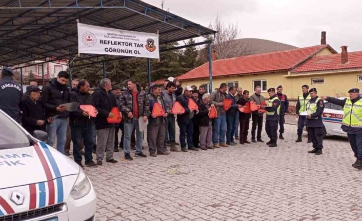 Geçen yıl başlatılan ve bu yıl da devam eden çalışma kapsamında Trafik Güvenliği Eylem Planı’nda belirtilen ’Reflektör Tak Görünür Ol’ kampanyası kapsamında traktörlerin karıştığı kazaları önlemeye yönelik Sandıklı Ziraat Odası ve Sandıklı Jandarma Komutanlığı Trafik Timleri ortaklaşa düzenlediği program kapsamında traktör şoförlerine, trafik kuralları hakkında bilgilendirme yapıldıktan sonra römorklara reflektör takıldı.